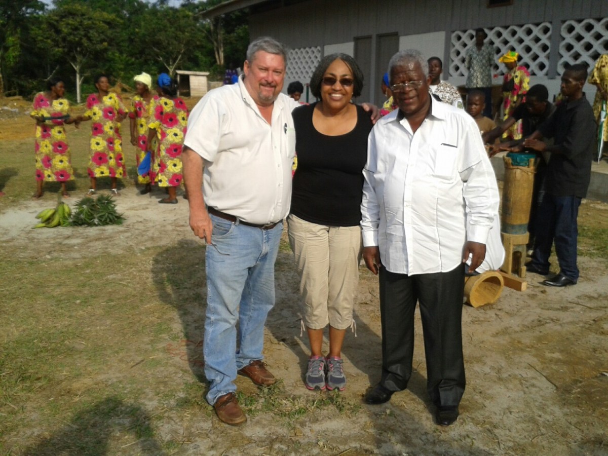 Ambassador Cynthia Akuetteh (center) with Bob Weisflog (left) and Gaston Biyogo (right) at the inauguration of the completed school