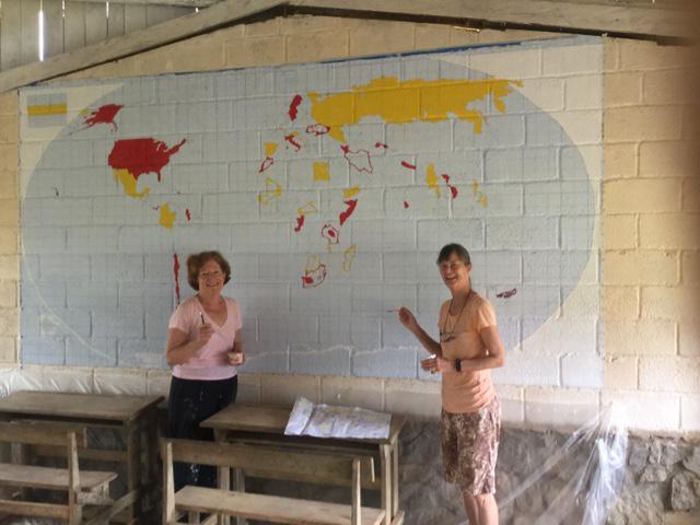 I’ve been promising a picture of the world map mural so here are Pooh and Joan.
