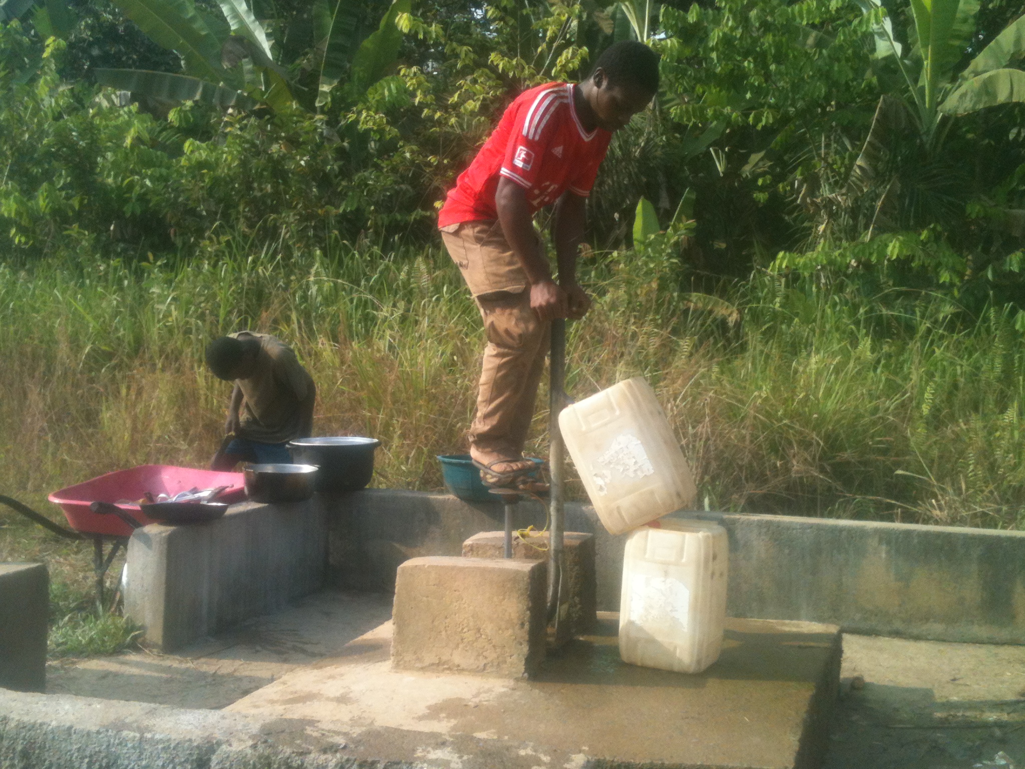 The well is a meeting place. It is normally the job for the young to get water, but we saw mothers and fathers there with their very small children. Whenever we took a bucket up to the well, a young child would inevitably emerge and take over the dance required to operate the foot pump.