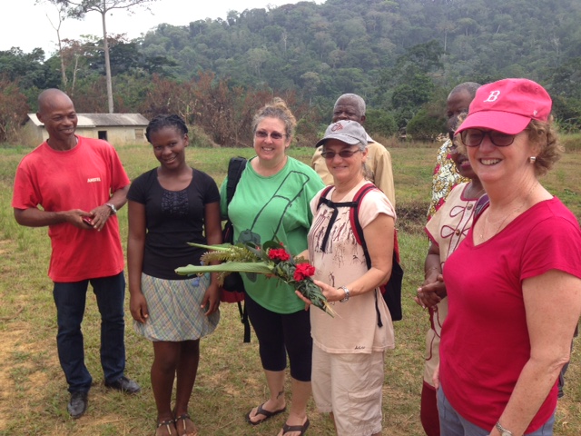 We had a wonderful dinner on arrival with all the contingent from Libreville and our hosts here. Then we split up to go to the places where we’re staying. Terri, Mary and John are staying in Giselle’s house while Drew and Claire are not far away in the house of one of Giselle’s family members. Doug continued on to Doumandzou with Gaston and settled into Papa’s house. All our lodging is comfortable; there’s electricity a couple of hours at night and indoor plumbing features. We are cooking on gas stoves and everyone is bending over backwards to make us feel at home. And we do.